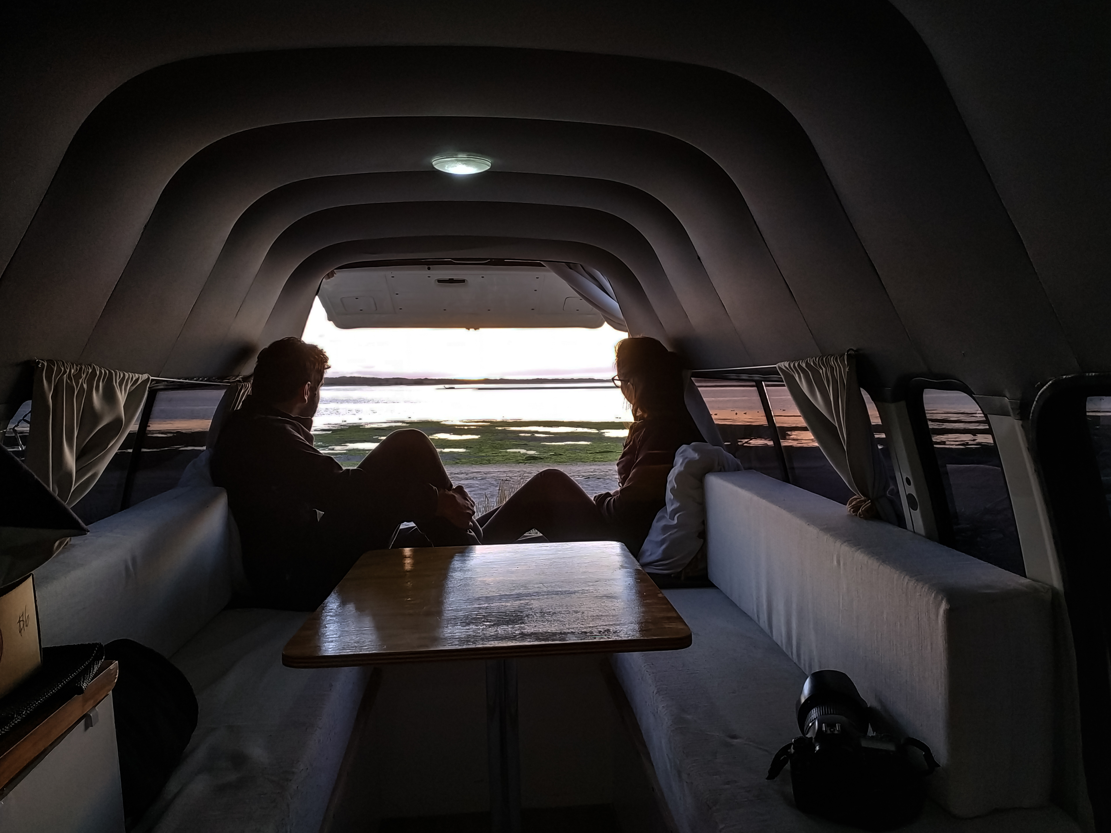 Dans notre van, cela implique de faire le lit tous les soirs, et de le défaire tous les matins. Un van où ce n’est pas nécessaire tout en conservant un espace debout et assis serait l’idéal. Globalement, on se couche beaucoup plus tôt en van, car il peut faire vite sombre et on est moins attirés par les écrans ou autres attractions citadines. On dort un peu avec le soleil, et c’est plutôt agréable. On se réveille donc généralement en même temps que le jour, et parfois avec beaucoup d’humidité. C’est un des principaux problème en van, l’humidité… Cela nécessitera d’aérer, d’essuyer autant que possible puis nettoyer de temps en temps.